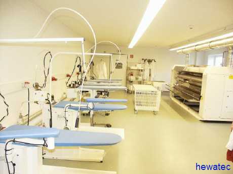 Dieser kleingewerbliche Bügeltisch hat einen Edelstahlkessel mit zirka 4,5 Liter Wasserinhalt und ermöglicht damit je nach Dampfabnahme den Einsatz über mehrere Stunden ohne Unterbrechung.